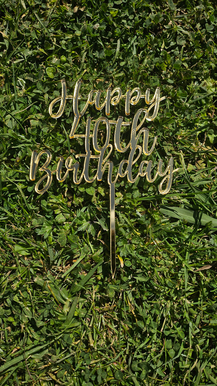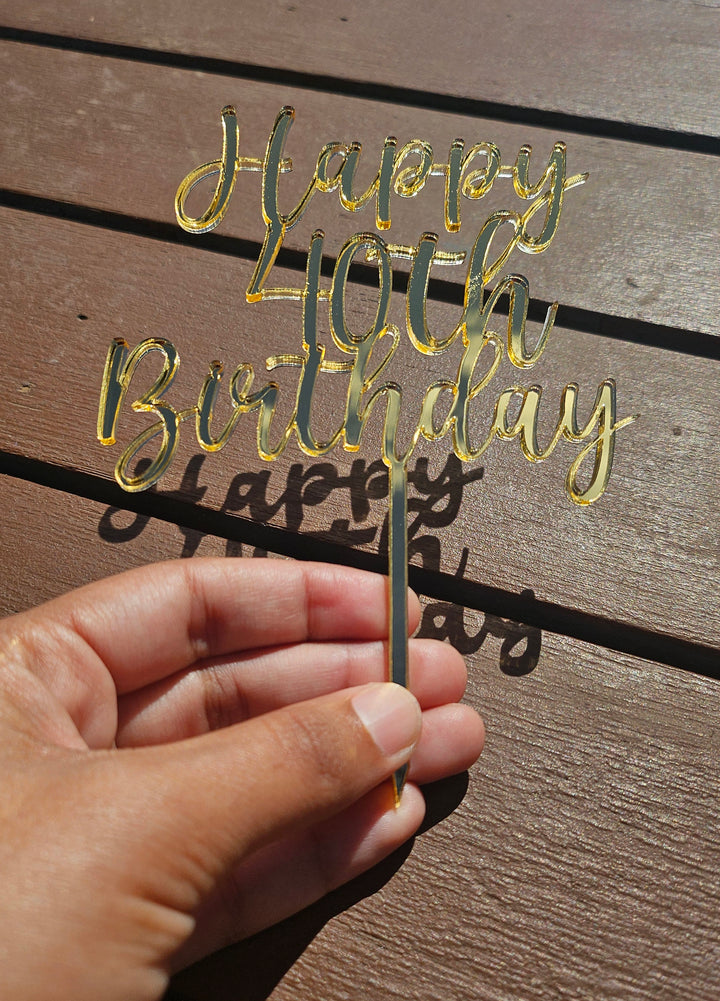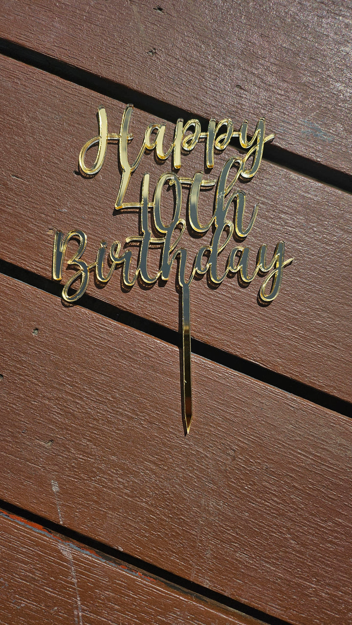 Celebrate your milestone in style with our Happy 40th Birthday cake topper — beautifully laser-cut from premium 3 mm mirror-gold acrylic for a luxurious finish that shines under any light.