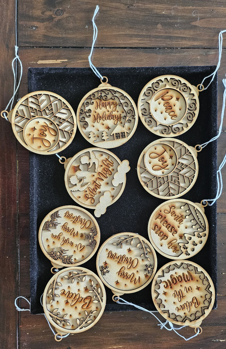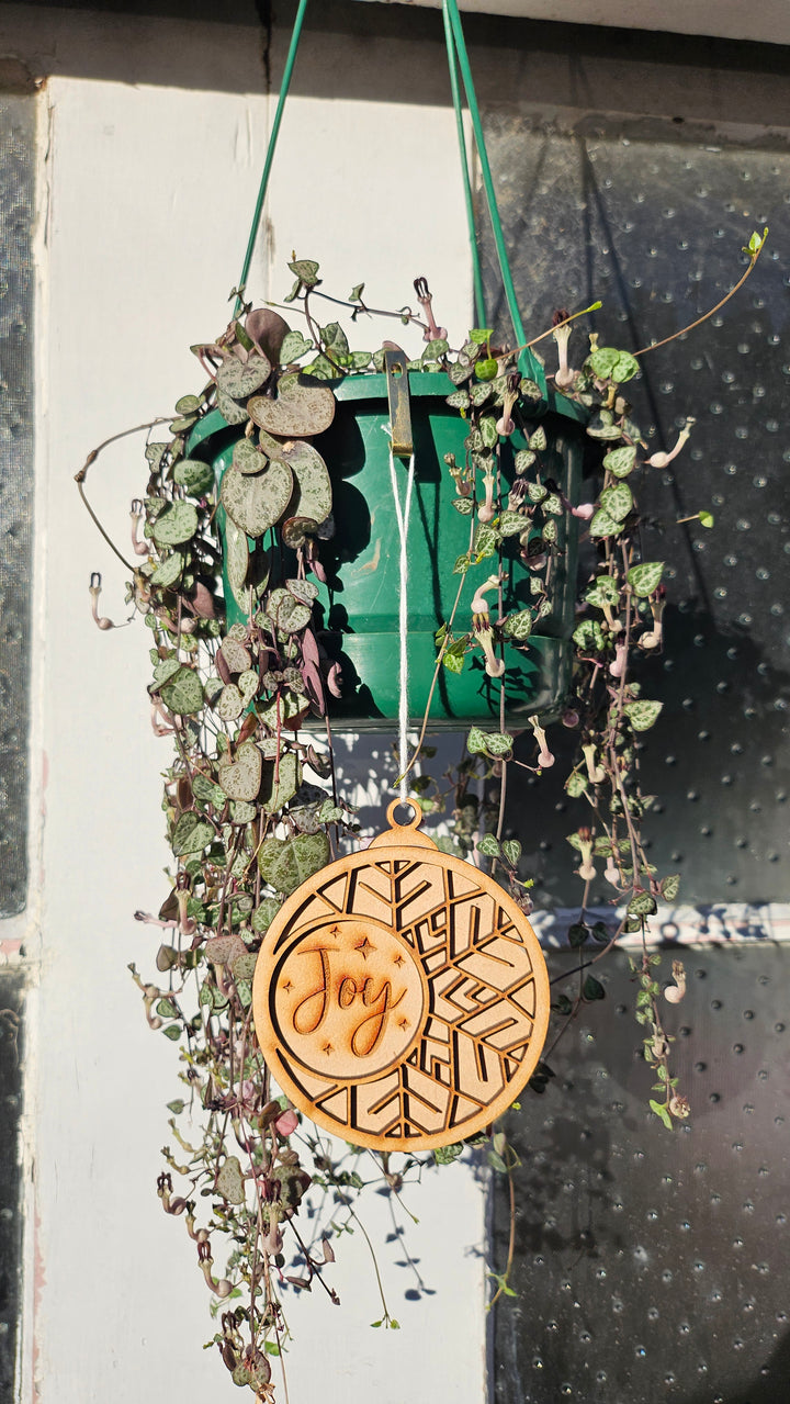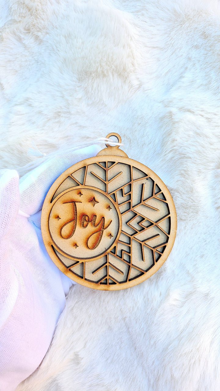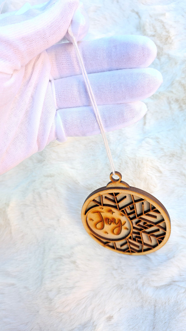 Spread holiday happiness with our Joy wooden ornament — laser-cut and engraved with precision to bring warmth and cheer to your festive décor. Featuring a detailed snowflake-inspired design and beautifully engraved lettering, this ornament perfectly combines rustic charm with elegant craftsmanship.