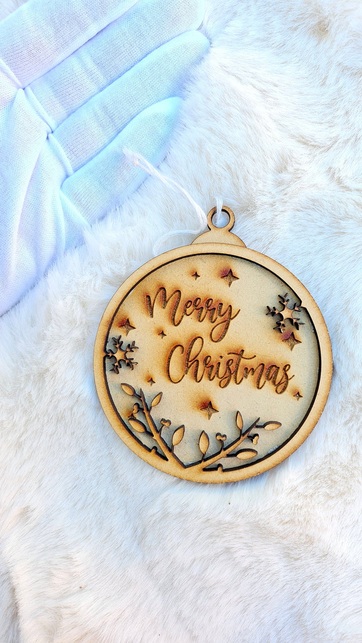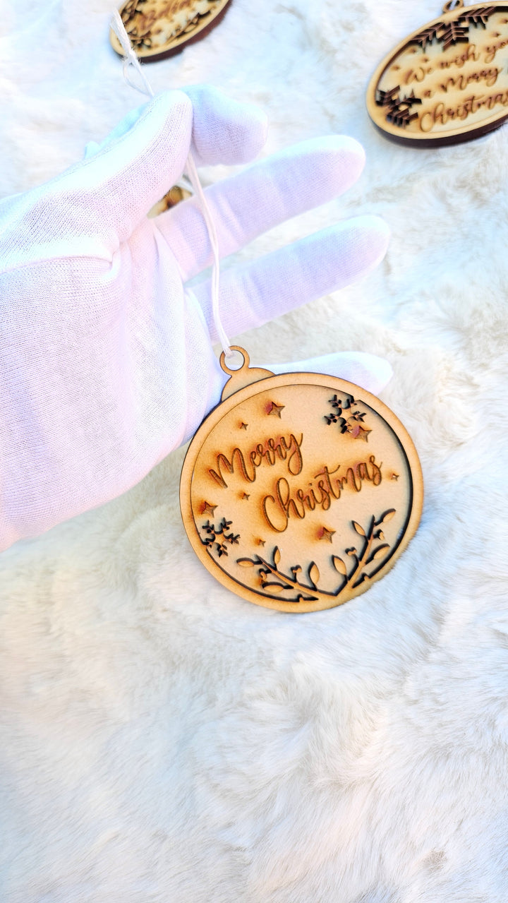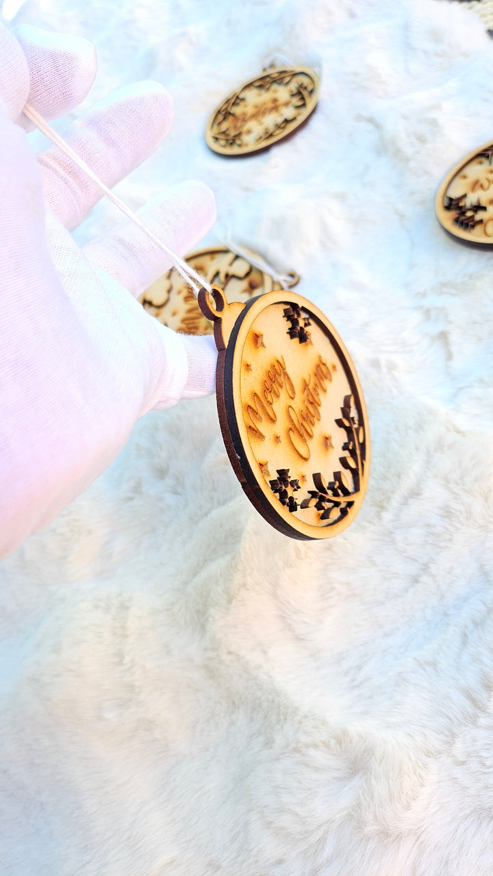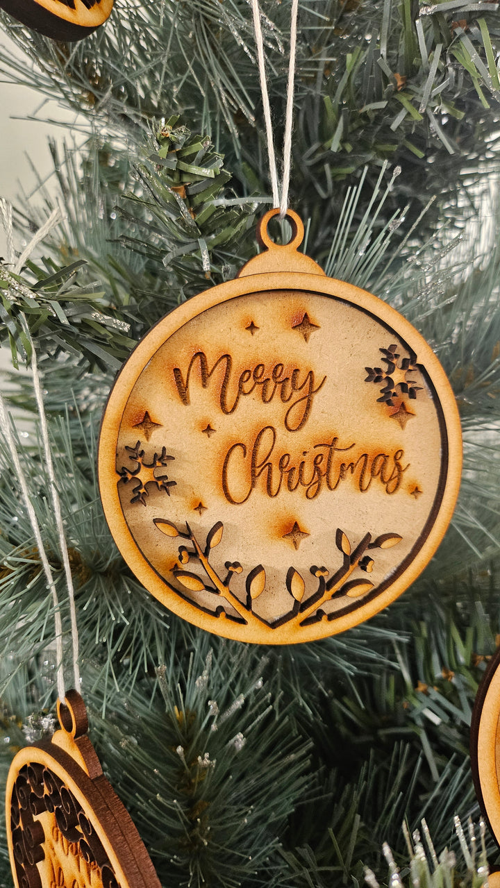 Bring warmth and rustic charm to your festive season with our Merry Christmas wooden hanging ornament — laser-cut with precision and engraved detail for a timeless natural finish. Each piece is crafted from eco-friendly wood MDF, giving your décor a handcrafted, earthy feel that perfectly complements any Christmas tree or gift wrapping.