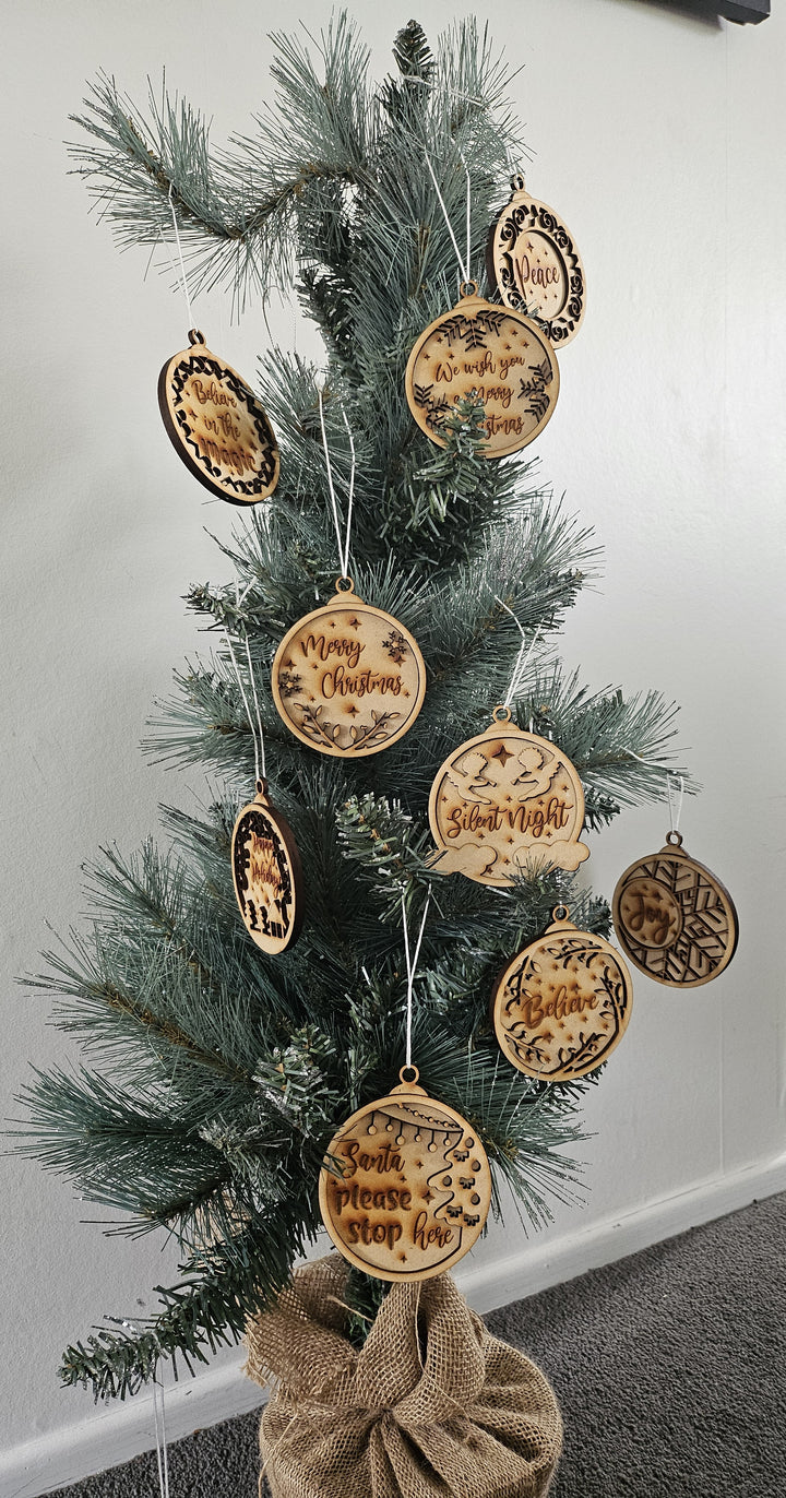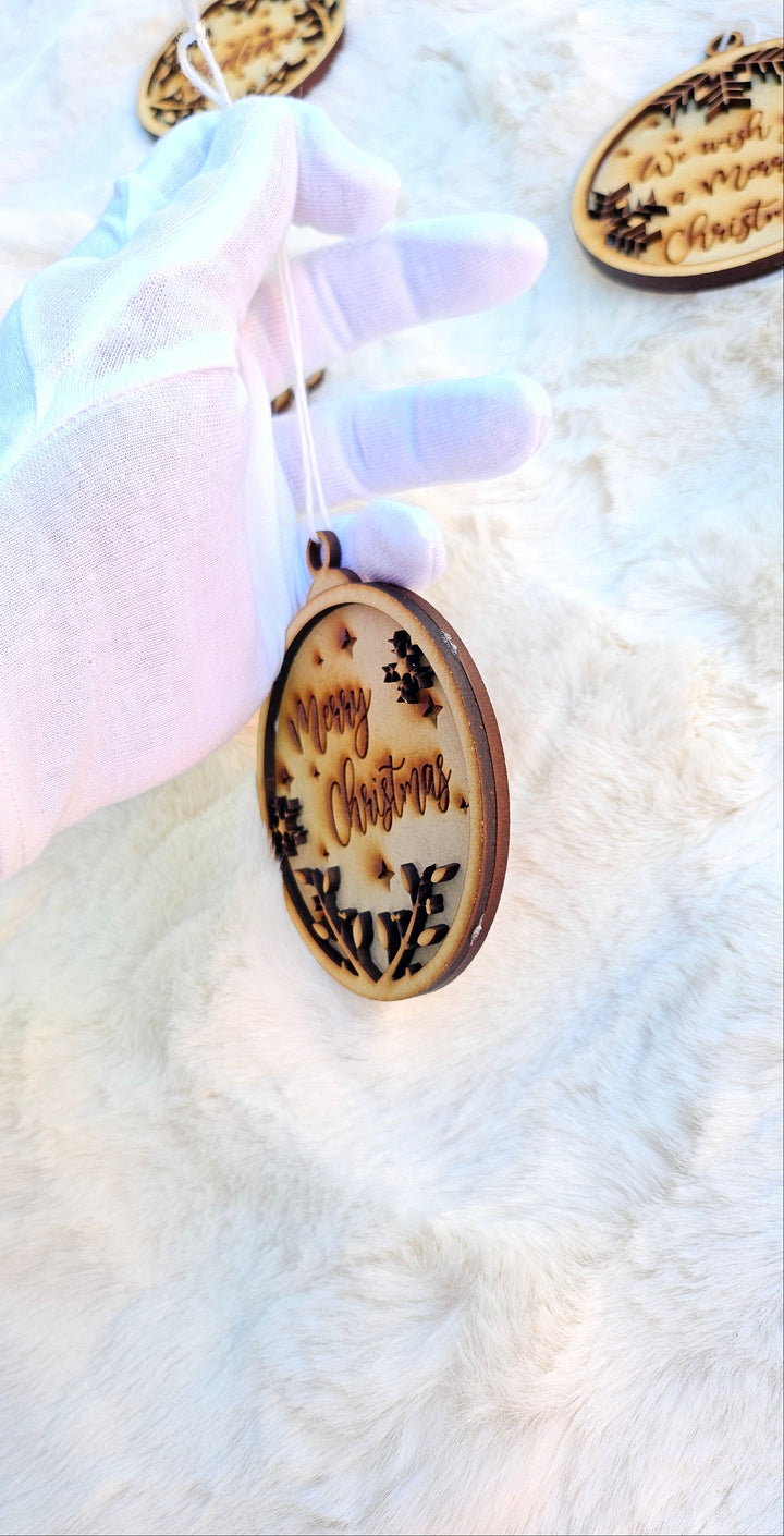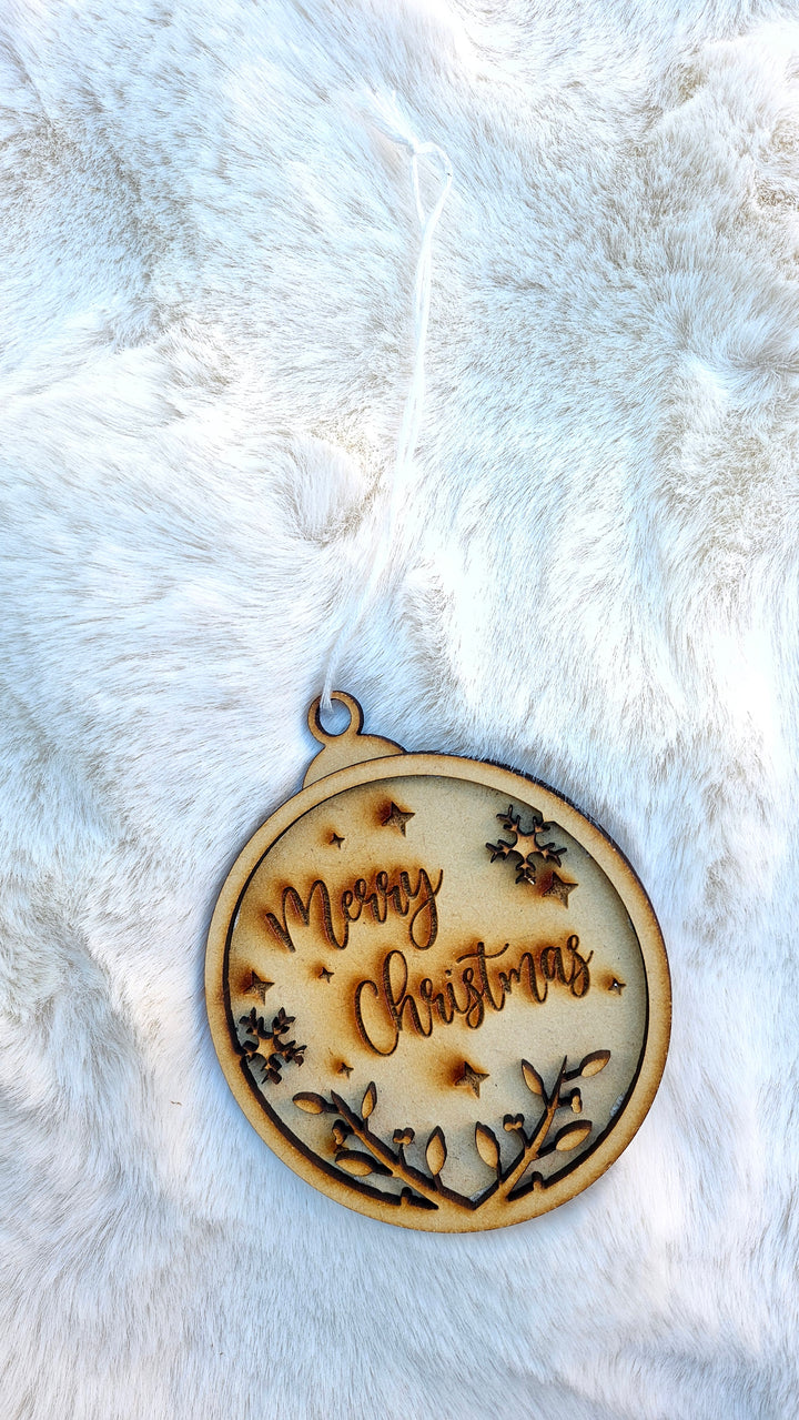 Bring warmth and rustic charm to your festive season with our Merry Christmas wooden hanging ornament — laser-cut with precision and engraved detail for a timeless natural finish. Each piece is crafted from eco-friendly wood MDF, giving your décor a handcrafted, earthy feel that perfectly complements any Christmas tree or gift wrapping.
