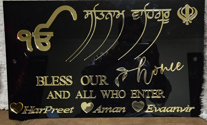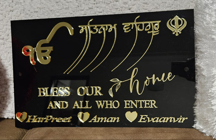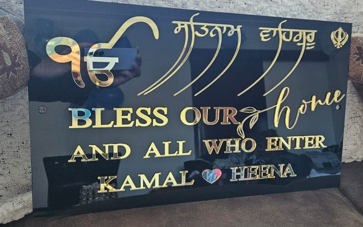 Bring divine blessings and elegance to your entrance with our Custom Sikh Mirror Acrylic Home Sign, beautifully designed with Ik Onkar, Khanda Sahib, and your personalised family names. This sign is a perfect fusion of spirituality, culture, and modern luxury — crafted to make your doorway feel warm, welcoming, and full of positive energy.