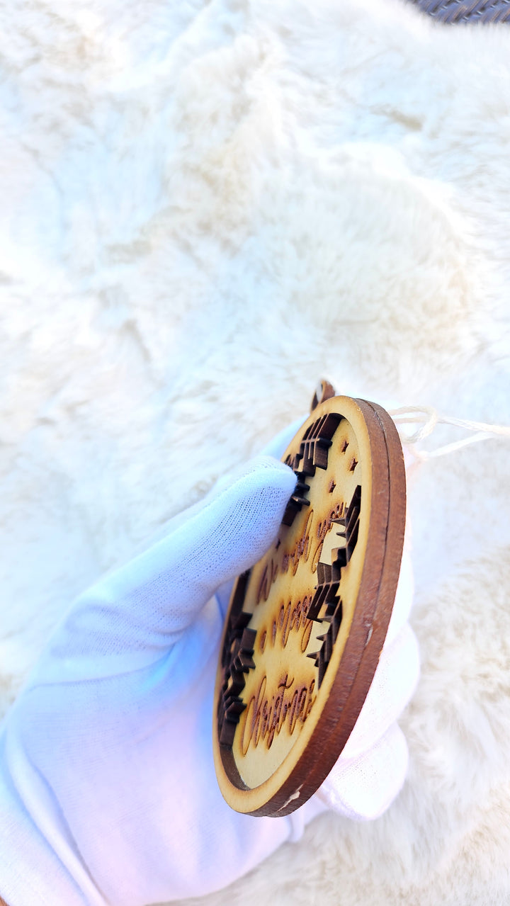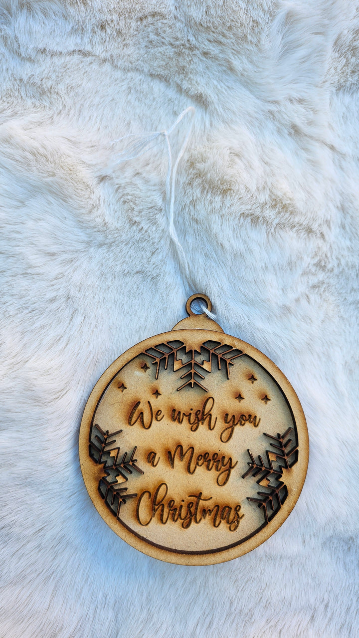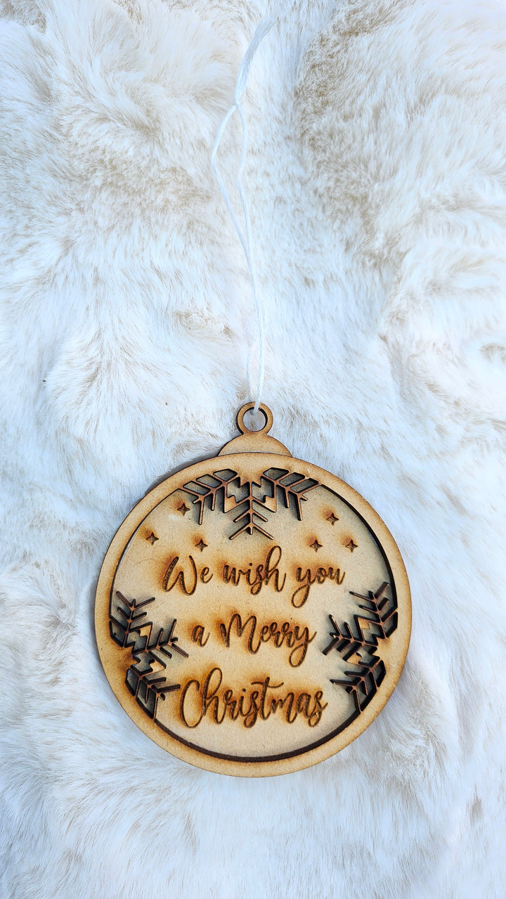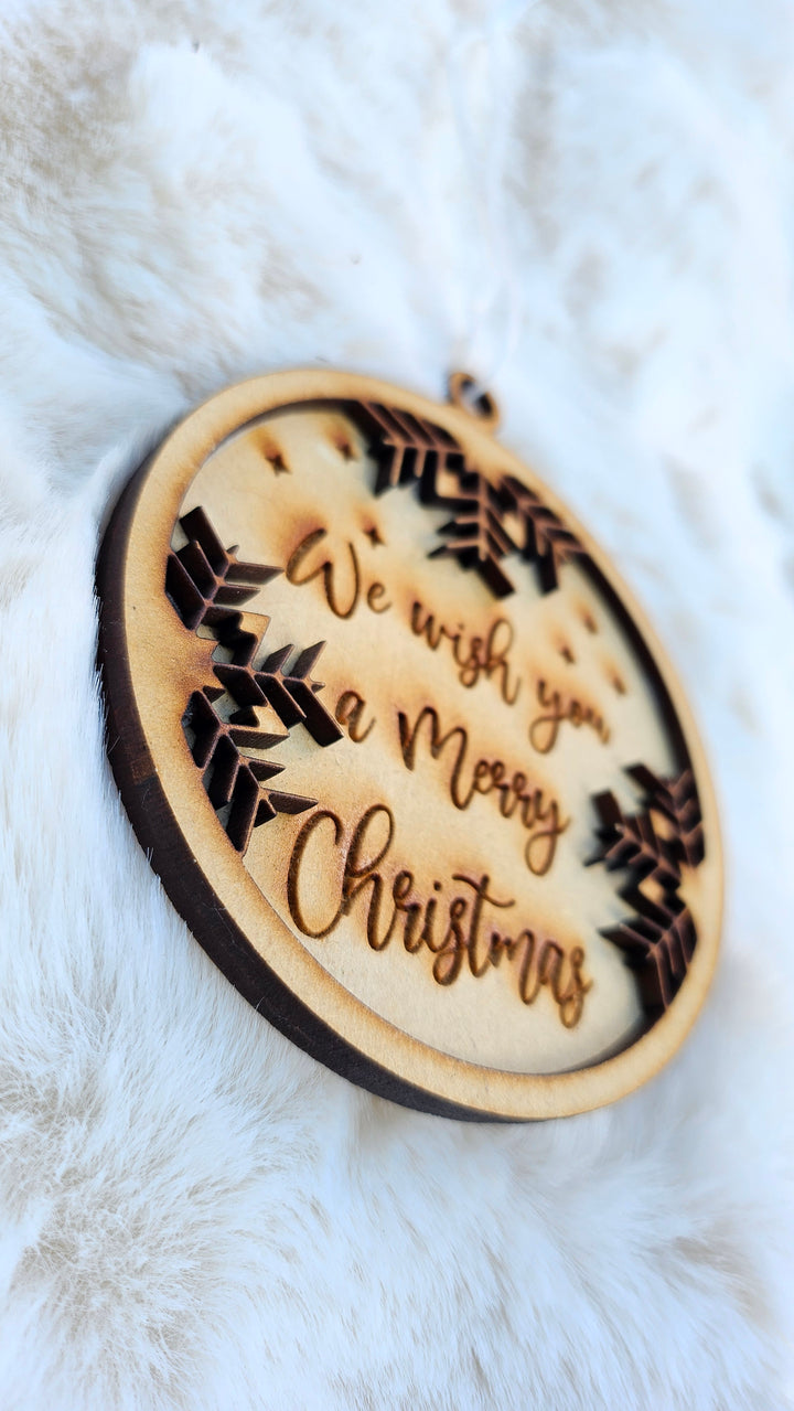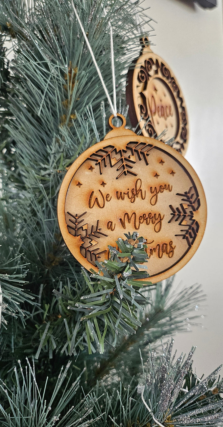 Celebrate the most wonderful time of the year with our We Wish You a Merry Christmas wooden ornament — laser-cut and engraved with precision to capture the spirit of the holidays. This handcrafted decoration features a snowflake-inspired border and elegant engraved lettering, perfect for adding a cozy rustic touch to your Christmas tree.